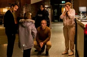 Was hat sie gesehen? Tochter Greta (Elisabeth Bellé, 2. v. li.) berichtet Vater Martin (Max von Pufendorf, li.), der Polizistin (Hilke Altefrohne) und den besorgten Eltern Jette (Elena Uhlig, re.) und Lars (Michael Lott).Bild: © ARD Degeto/Gordon Mühle