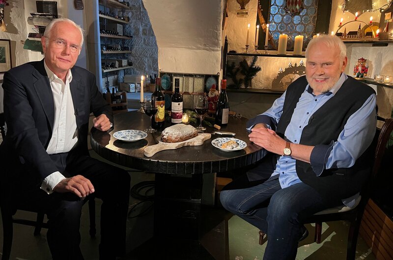 MDR FERNSEHEN WENN ENGEL ABSCHIED NEHMEN, "Erinnerungen an Weihnachten mit Gunther Emmerlich", am Samstag (20.12.25) um 20:15 Uhr. Tom Pauls und Gunther Emmerlich (v.l.) Er war immer ein Weihnachtsmensch und so mancher hielt ihn gar für den Weihnachtsmann persönlich – Gunther Emmerlich. Viele Jahre lud er „seine“ Zuschauer nach Hause ein, in die Villa Maria in Dresden. Immer wenige Tage vor Weihnachten. Es wurde über Weihnachtsmusik geredet, gekocht und getrunken. Und immer entstand diese private Atmosphäre, diese vertraute, weihnachtlich-freundschaftliche Stimmung. Ob an seinem Tannenbaum im Wohnzimmer, in der Küche mit seinen Musikern oder im berühmten Weinkeller. Hierher lud Gunther Emmerlich seine Freunde und Gäste besonders gerne ein, um über Weihnachten zu sprechen und dabei das ein oder andere Fläschchen zu probieren.Bild: © MDR