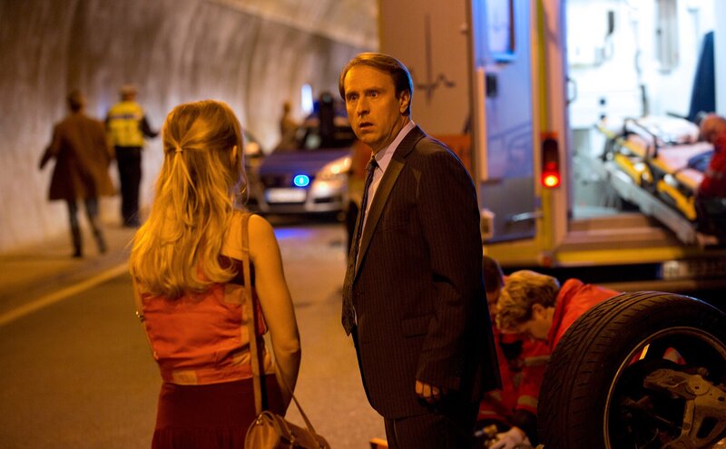 Ein Tunnel. Überschlag. Dann Ruhe. Das soll alles gewesen sein? Ganz plötzlich sieht sich der Außendienstmitarbeiter Paul Lohmann (Bjarne Mädel) mit seinem Ableben konfrontiert. Soll dieser Autounfall wirklich das Ende sein? Lohmann wehrt sich, er will nicht sterben. Überhaupt, gerade heute wollte er doch wieder groß ins Geschäft einsteigen, anknüpfen an die großen Erfolge von vor zehn Jahren. Verkäufer des Jahres 1999 bis 2004, keiner verkauft mehr Spiegel als Paul Lohmann! Und nun stirbt er gerade an diesem Tag wegen eines dämlichen Autounfalls. Andererseits: So richtig tot ist Paul Lohmann noch nicht, erklärt ihm die Anhalterin Angie (Friederike Kempter), die er kurz vorher mitgenommen hat. Sondern in einer Zwischenwelt, noch nicht ganz tot, aber auch nicht mehr ganz lebendig. Sozusagen in der Warteschleife, bis seine Frau Edith (Katharina Marie Schubert) im Krankenhaus entschieden hat, ob die Maschinen am hirntoten Paul Lohmann abgeschaltet werden sollen. Diese letzte Chance will Lohmann nutzen. Er bringt Angie, seinen Engel, dazu, ihn den Tag nochmal erleben zu lassen. Der Tod muss sich doch vermeiden lassen. Einmal, zweimal, dreimal … immer endet es im Tunnel. Angie hat ihre liebe Not mit Paul Lohmann, der einfach nicht locker lässt, verhandeln kann er schließlich. Er, der außerdem immer intensiver auf sein Leben schaut und dann doch gern das eine oder andere ändern würde. Denn wenn er mal ehrlich zu sich selber ist, kann er sich denken, warum Edith sich von ihm trennen will oder seine Tochter nicht so viel von ihm hält. Lohmann versucht, das ein oder andere besser zu machen. Frau, Tochter, Geliebte, alle wundern sich über einen Lohmann, der plötzlich aus seiner Routine ausbricht, ganz ungewohnte Dinge sagt. Sie können ja nicht wissen, dass er um sein Leben kämpft. Oder wenigstens um die Erinnerungen, die von ihm bleiben werden. Denn Lohmanns Lebensmotto hat sich nicht geändert: Wer aufgibt, ist tot! Der Tod kann ausgesprochen unterhaltsam sein. Und heiter. Anrührend sowieso. Für die Zuschauer jedenfalls, für Paul Lohmann, die Hauptfigur der Tragikomödie "Wer aufgibt ist tot", ist er ein Ärgernis, das unbedingt verhindert werden muss. Drehbuchautor Christian Jeltsch gibt ihm die Chance dazu: Lohmann kann seinen letzten Tag immer wieder neu durchleben. Und dabei bemerken, dass es nicht reicht, am Zeitablauf zu schrauben, dass vielmehr seine Lebensführung Veränderung nötig hätte. Es steckt eine verzweifelte Komik in Lohmanns Anstrengungen, die Regisseur Stephan Wagner in virtuosen Variationen zum Vorschein bringt. In Bjarne Mädel fand er den idealen Hauptdarsteller dafür, der gemeinsam mit Katharina Marie Schubert, Friederike Kempter und Amber Bongard aufmunternd vom Sterben erzählen kann und dabei an die tiefe Sehnsucht rührt, das gelebte Leben nochmal ändern, besser leben zu können. Paul Lohmann: Bjarne Mädel Edith Lohmann: Katharina Marie Schubert Sonja Lohmann: Amber Bongard Angie: Friederike Kempter Max: David C. Bunners Ärztin: Charlotte Bohning Jutta: Viola Pobitschka Nussbaum jr.: Oliver Bröcker Junger Kollege: Till Florian Beyerbach Herrmann: Fritz Roth und andere...