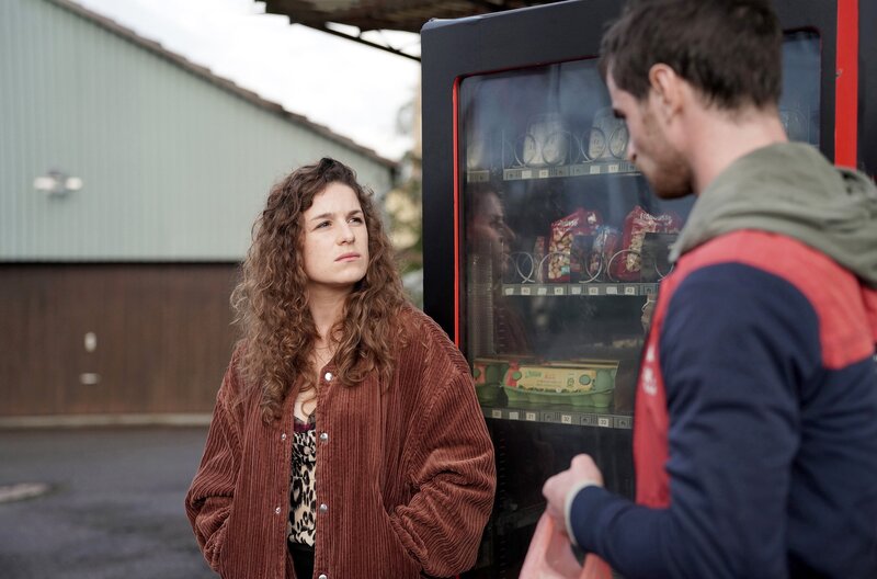 Anita (Lou Strenger) will sich nicht an ihre Vergangenheit erinnern, Paul (Aaron Hilmer) fürchtet seine Erinnerungen. Auf der Suche nach Ablenkung treffen die beiden am Getränkeautomat aufeinander.Bild: © SWR