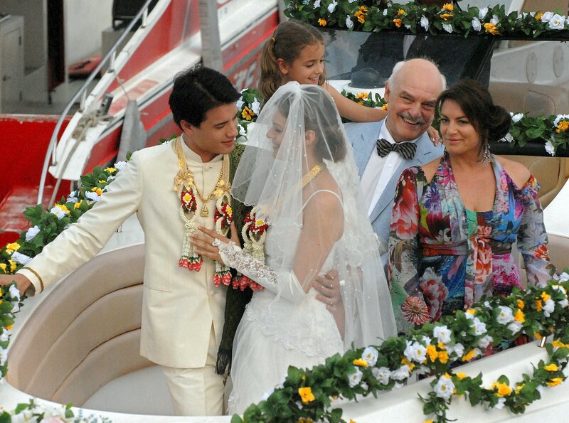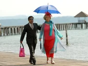 Maria (Christine Neubauer, re.) hat die Hochzeit ihrer Halbschwester Clara (Suzan Anbeh) mit dem Musiker Lin (Justin Hills) zu einem feierlichen Event gestaltet, bei dem auch ihr Vater Willi (Charles Brauer, 2.v.re.) und Claras Tochter Johanna (Alexandra Wallis) nicht fehlen dürfen.