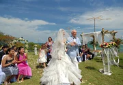 Willi (Charles Brauer, re.) führt seine Tochter Clara (Suzan Anbeh) vor den Altar. Maria (Christine Neubauer) und Johanna (Alexandra Wallis) wohnen der feierlichen Zeremonie bei.