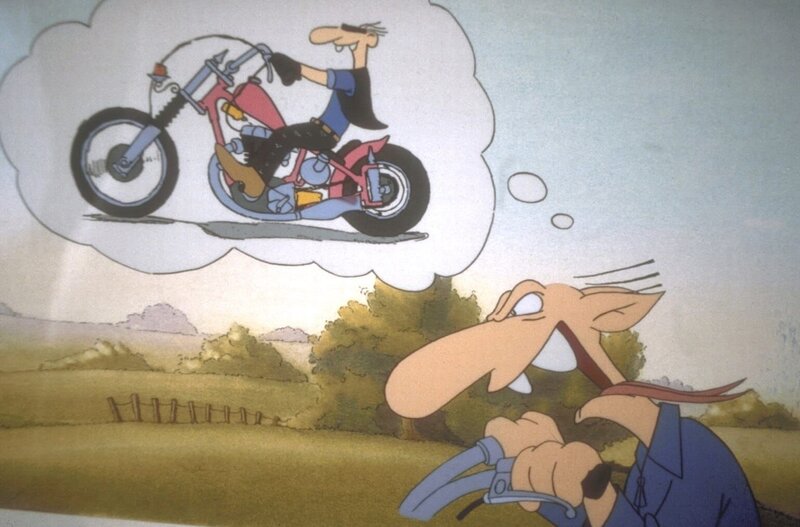 Comic-Zeichner Brösel (Roetger Feldmann) würde am liebsten aus dem Vertrag aussteigen, um in Ruhe mit seiner Horex über Berg und Tal düsen zu können ...