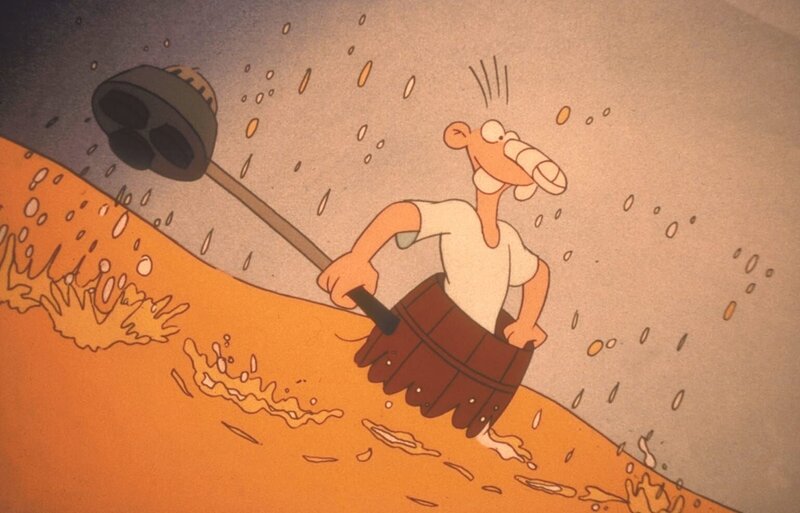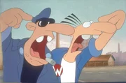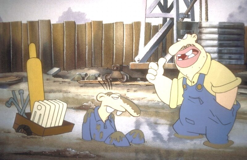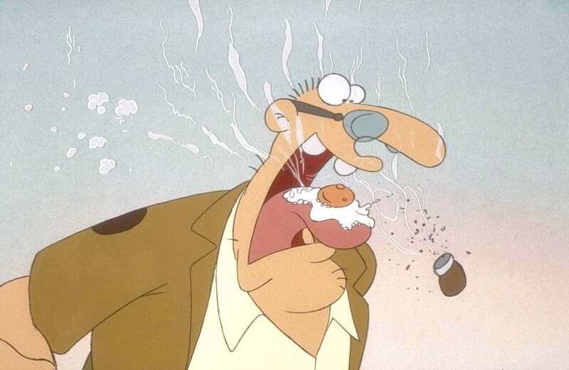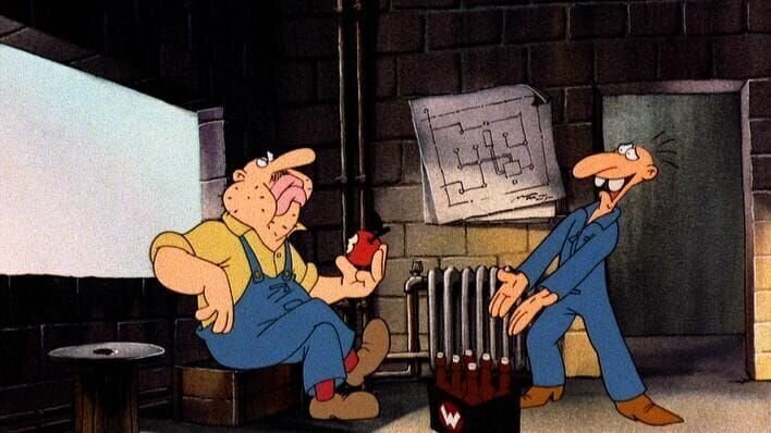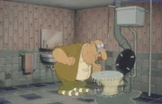 Werner, immer der Auslöser der Katastrophe: Bei der Reparatur einer verstopften Toilette bleibt Meister Röhrich mit dem Kopf in der Schüssel stecken ...