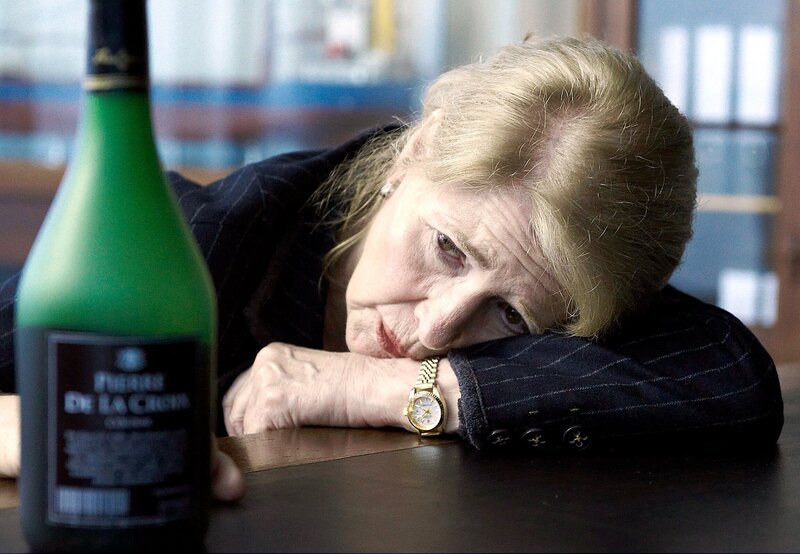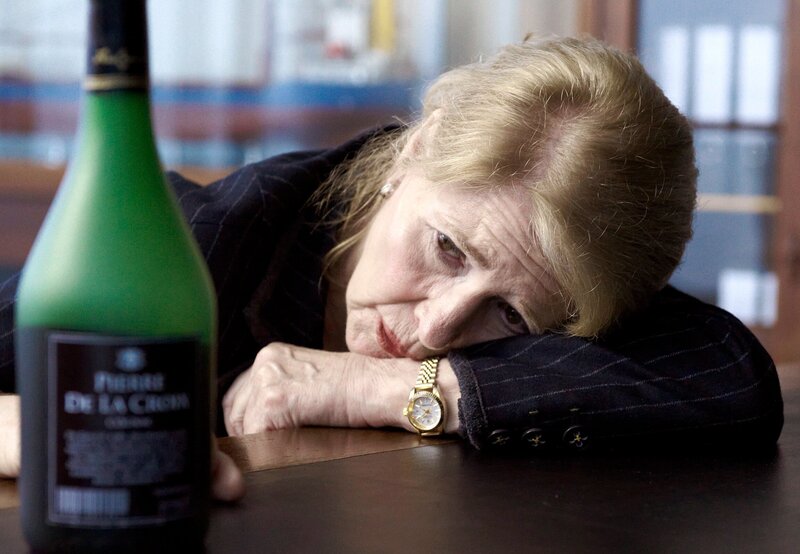 MDR Fernsehen WIE EIN LICHT IN DER NACHT, am Montag (23.04.12) um 23:00 Uhr. In ihrer Einsamkeit verfällt die einstige Karrierefrau Carla (Christiane Hörbiger) dem Alkohol.Bild: © MDR/Degeto/Svenja von Schultzendorff