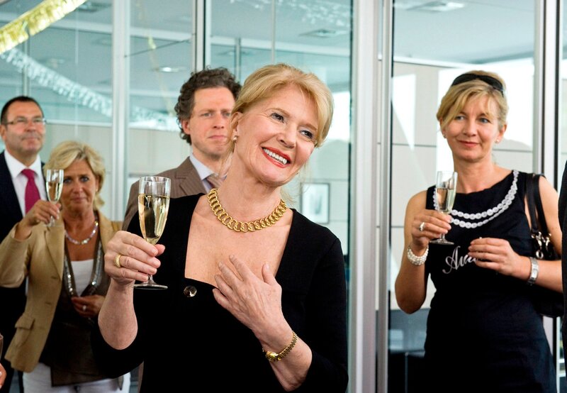 In feierlicher Runde nimmt Carla (Christiane Hörbiger) Abschied vom Berufsleben.Bild: © SWR/Degeto/Svenja von Schultzendorff