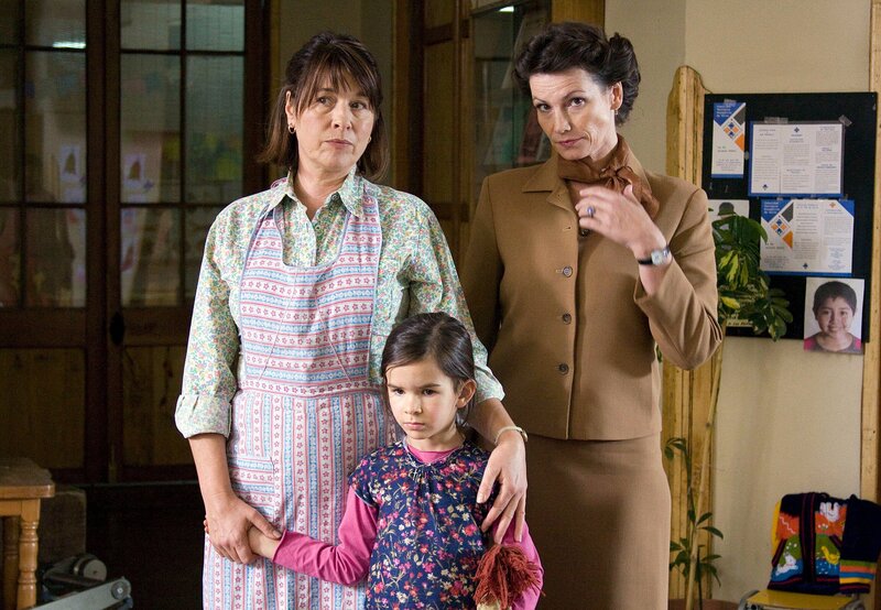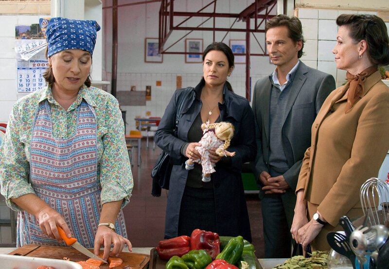 Die Heimleiterin Senora Sophia (Franziska Walser, li.) und Senora Picotta (Sabine Vitua) sind skeptisch, ob die kleine Araceli (Lilli Geber) sich mit ihren Adoptiveltern versteht.Bild: © ARD Degeto/Michelle Bossy