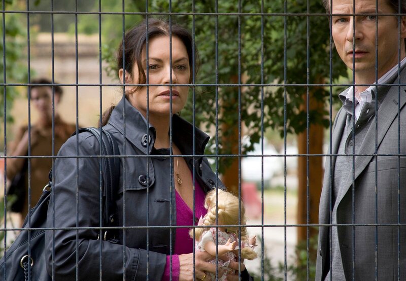 Marlen (Christine Neubauer) und Henning (David C. Bunners) sehen sich ein Foto ihres Adoptivkindes Araceli (Lilli Geber) an.Bild: © ARD Degeto/Michelle Bossy