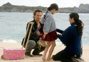 Marlen (Christine Neubauer) und Henning (David C. Bunners) gehen mit ihrer Adoptivtochter Araceli (Lilli Geber) am Strand spazieren.Bild: © ARD Degeto/Michelle Bossy