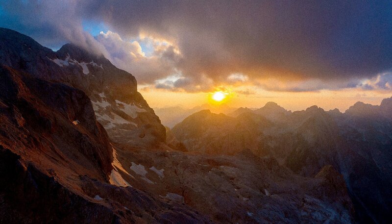 Slowenien gehört zu den kleinsten Ländern Europas und weist dennoch eine erstaunliche Vielfalt in seinen Landschaften, seiner Tier- und Pflanzenwelt auf. "Wildes Slowenien" entführt den Zuschauer auf eine Reise, die von den Julischen Alpen, über die pannonischen Ebenen, hinab in unterirdische Karstwelten bis zu den Tiefen der Adria reicht. - Sonnenaufgang in den Julischen Alpen.