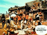 Als eine Bande von Desperados immer wieder für Unruhen im Land sorgt, werden Winnetou (Pierre Brice, M.) und Old Shatterhand (Lex Barker, r.) zur Hilfe gerufen ...