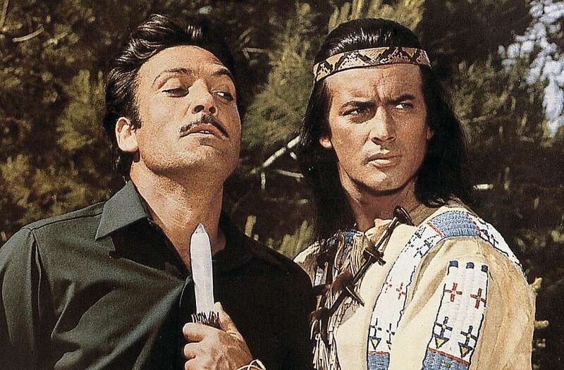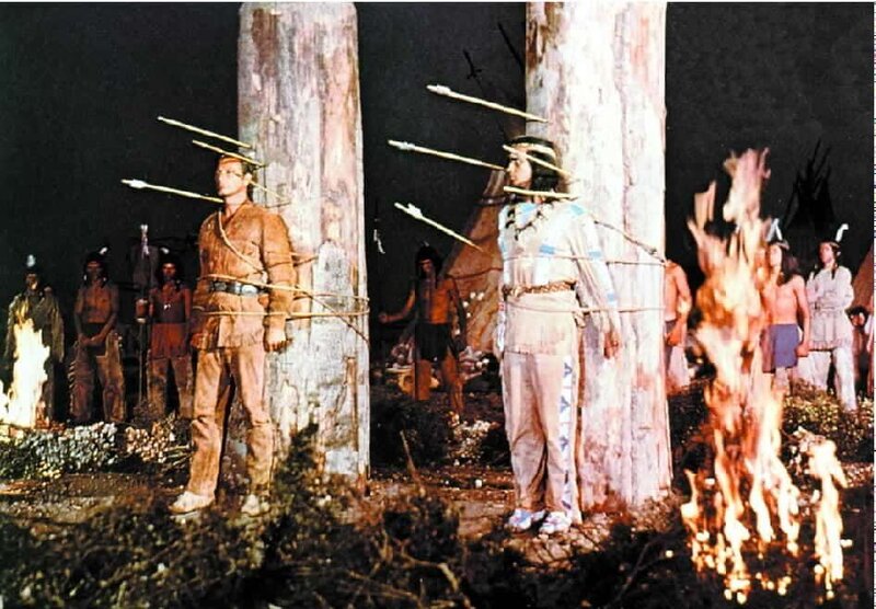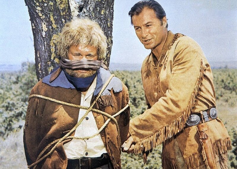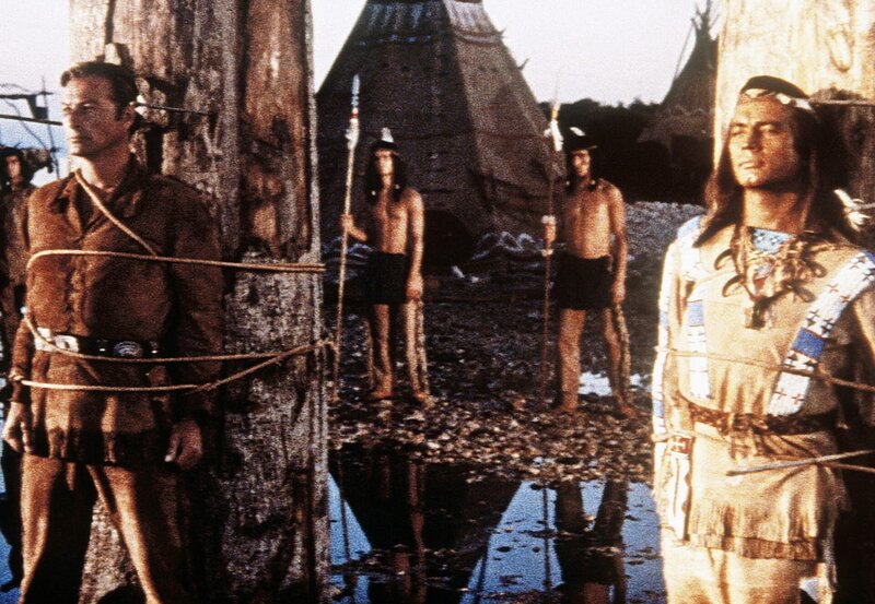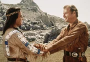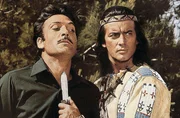 Der Kampf um den Frieden zwischen Rot und Weiß geht weiter: Winnetou (Pierre Brice, l.) und sein Freund Old Shatterhand (Lex Barker, r.) wollen den skrupellosen Anführer Rollins zur Vernunft bringen ...