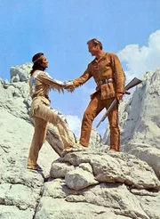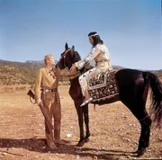 Winnetou (Pierre Brice, l.) und Old Shatterhand (Lex Barker, r.) sind auf der Suche nach Rollins, dem skrupellosen Anführer einer Bande von Desperados ...