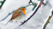 Rotkehlchen auf verschneitem Ast.Bild: © ARD/Daniela Incoronato