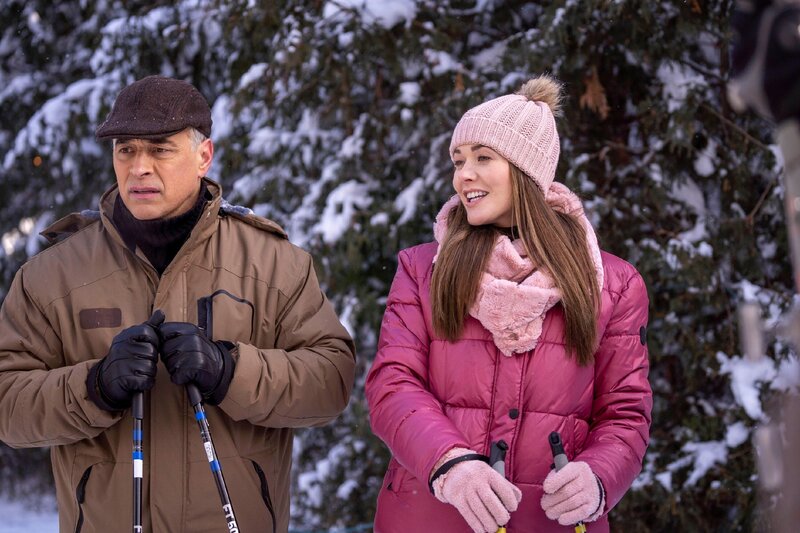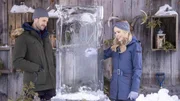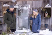 Hannah Fisher (Jocelyn Hudon, mi.) arbeitet in einem Reisebüro und soll sich zu Recherchezwecken in den Norden Kanadas begeben, um sich das berühmt berüchtigte Eishotel anzuschauen. Der Besitzer und Designer des Hotels Ben Wade (Steve Lund, li.) und Hannah mögen sich auf Anhieb gern, doch bevor es zu einem Happy End für die Beiden kommt, richtet Hannah einigen Schaden an. Sie ist jedoch stets mit tollen Ideen dabei, ihre Missgeschicke wieder gut zu machen. Beruflich planen die beiden Verliebten Bens nächstes Projekt - ein Eishotel in Finnland.Bild: © TVNOW / petr maur