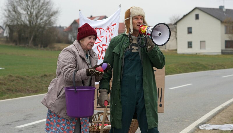 Da helfen auch Oma Eberhofers (Enzi Fuchs) Geheimrezepte nix mehr: Franz Eberhofer (Sebastian Bezzel) muss seinen Vater (Eisi Gulp, links) mitsamt abgehacktem Zeh ins Krankenhaus fahren.