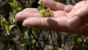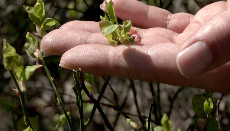 Christian Penk zeigt eine Blaubeerpflanze.Bild: © MDR/Julius Günzel