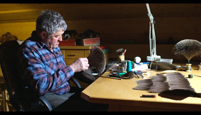 Der Mühlbichler Sepp in Kematen betreibt mit großer Fingerfertigkeit ein heute fast ausgestorbenes Handwerk: das Gamsbartbinden.Bild: © MDR/HR/Rolf Bickel