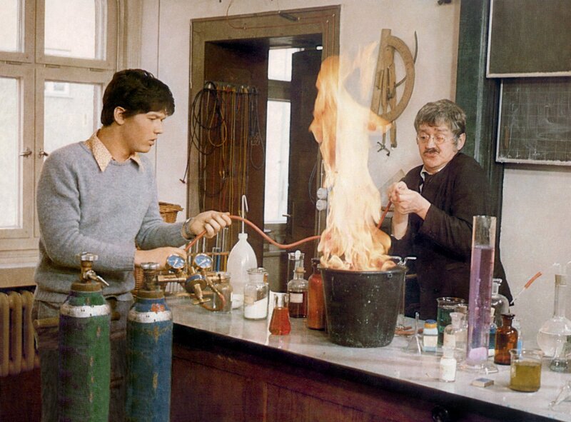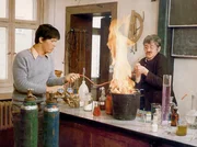 Pepe Nietnagel (Hansi Kraus, li.) hat Hausmeister Bloch (Hans Terofal) zu einem chemischen Experiment verleitet, das haarsträubende Folgen hat.Bild: © SWR/Degeto