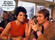 ARD WIR HAUN DIE PAUKER IN DIE PFANNE, Deutschland 1970, Regie Harald Reinl, am Samstag (22.10.11) um 10:55 Uhr im Ersten. Pepes Schwester Marion (Uschi Glas) ist sehr angetan von dem jungen Journalisten Hubert Böhm (Fritz Wepper, re.), der sich um sie bemüht.Bild: © ARD Degeto