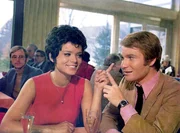 Pepes Schwester Marion (Uschi Glas) ist sehr angetan von dem jungen Journalisten Hubert Böhm (Fritz Wepper, re.), der sich um sie bemüht.Bild: © BR/ARD Degeto