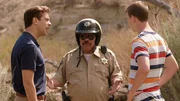 Einer von beiden muss sich opfern und den schwulen mexikanischen Polizisten (Luis Guzman, M.) glücklich machen, sonst droht der Knast: David (Jason Sudeikis, l.) und Kenny (Will Poulter, r.) ...Bild: © bTV - bTV Media Group