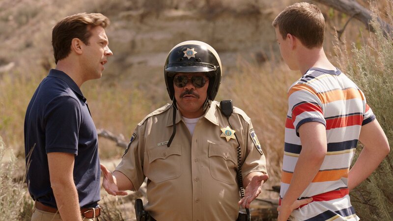 Als ihr Wohnmobil, vollgestopft mit zwei Tonnen Marihuana, den Geist aufgibt, werden die Millers (Jason Sudeikis, l., Jennifer Aniston, r.) ausgerechnet von einem Polizisten der Drogenfahndung gerettet. Jetzt heißt es, einen kühlen Kopf zu bewahren ...Bild: © PLURIMEDIA (Warner Bros Entertainment Inc.)