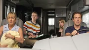 In einem Wohnmobil brausen die Millers am langen Wochenende über die Grenze? (Foto, v.l.n.r.: Jennifer Aniston, Will Poulter, Emma Roberts und Jason Sudeikis)Bild: © RTLZWEI
