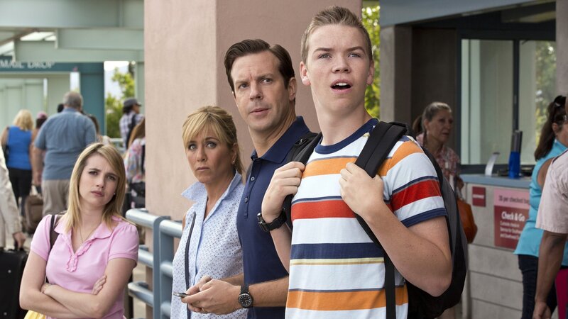 (v.li.): David Clark (Jason Sudeikis), Rose O'Reilly (Jennifer Aniston), Kenny Rossmore (Will Poulter), Casey Mathis (Emma Roberts).Bild: © ORF