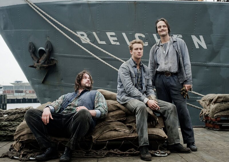 Matze (Ronald Zehrfeld, li.) ahnt nicht, dass seine Kollegen Cornelis (Alexander Fehling, Mitte) und Andreas (August Diehl, re.) ihn bespitzelnBild: © MDR/ARD Degeto/UfaCinema/Gordon Muehle