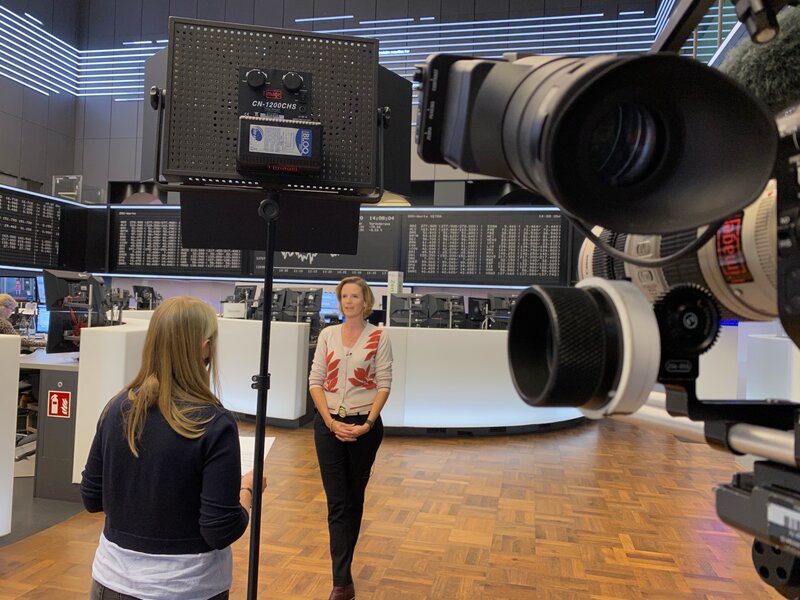 Börse inside: ZDF-Reporterin Valerie Haller hat Aufstieg und Fall des Unternehmens Wirecard auf dem Frankfurter Parkett hautnah mitbekommen.Bild: © Marcel Herrmann / ZDF