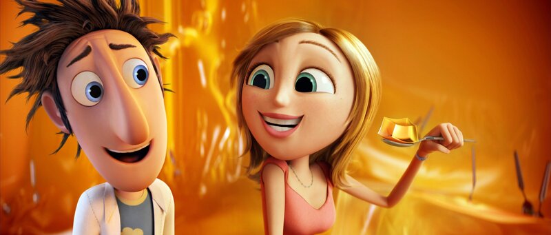 Flint Lockwood (r.), ein Erfinder mit bisher mäßigem Erfolg, steht vor der Entdeckung seines Lebens: einer Maschine, die Essen produziert. Doch plötzlich spielt die Maschine verrückt und verursacht essenstechnische Unwetter. Nachwuchs-Wetterreporterin Sam (..) ist sofort zur Stelle ...Bild: © ORF/Sony Pictures