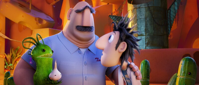 "Wolkig mit Aussicht auf Fleischbällchen 2", Der junge Erfinder Flint Lockwood wird von seinem großen Idol, dem charismatischen Chester V, in dessen Unternehmen der klügsten Köpfe aufgenommen. Und schon erhält er einen Spezialauftrag: Auf der Insel Affenfels ist Flints berühmt-berüchtigte Apparatur 'FLDSMDFR' außer Kontrolle geraten. Statt aus Wasser Nahrungsmittel zu machen, produziert sie seltsame Mischwesen wie Shrimpansen, Frittantulas und Tacodile. Flints Freundin, die Reporterin Sam Sparks, macht sich begeistert mit ihm auf den Weg, die Welt vor den gefährlichen Fressmonstern zu retten. SENDUNG: ORF eins - MI - 06.01.2021 - 10:35 UHR. - Veroeffentlichung fuer Pressezwecke honorarfrei ausschliesslich im Zusammenhang mit oben genannter Sendung oder Veranstaltung des ORF bei Urhebernennung.