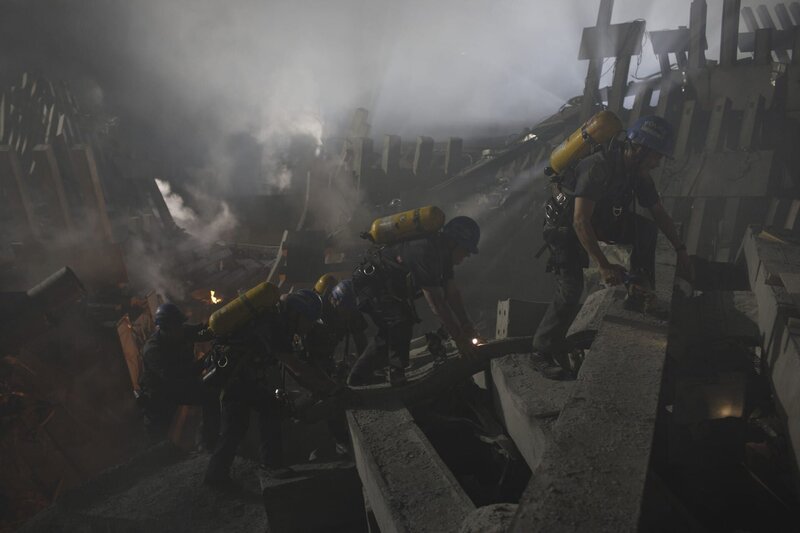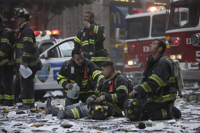 Von einem Moment auf den anderen werden die Retter zu Opfern. 2749 Menschen sterben beim Attentat auf das World Trade Center, darunter über 300 Polizisten. 20 von ihnen können gerettet werden: Auch John McLoughlin (Nicolas Cage, liegend) wird schwer verletzt lebendig begraben, 22 Stunden liegt er unter Betonplatten, ehe er doch noch gefunden wird ...