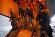 Gerry (Brad Pitt, r.) hat keine Wahl: Wenn seine Familie sicher auf dem Militärschiff bleiben soll, muss er versuchen, eine Heilung zu finden. Er willigt in Thierrys (Fana Mokoena, M.) Deal ein ...