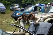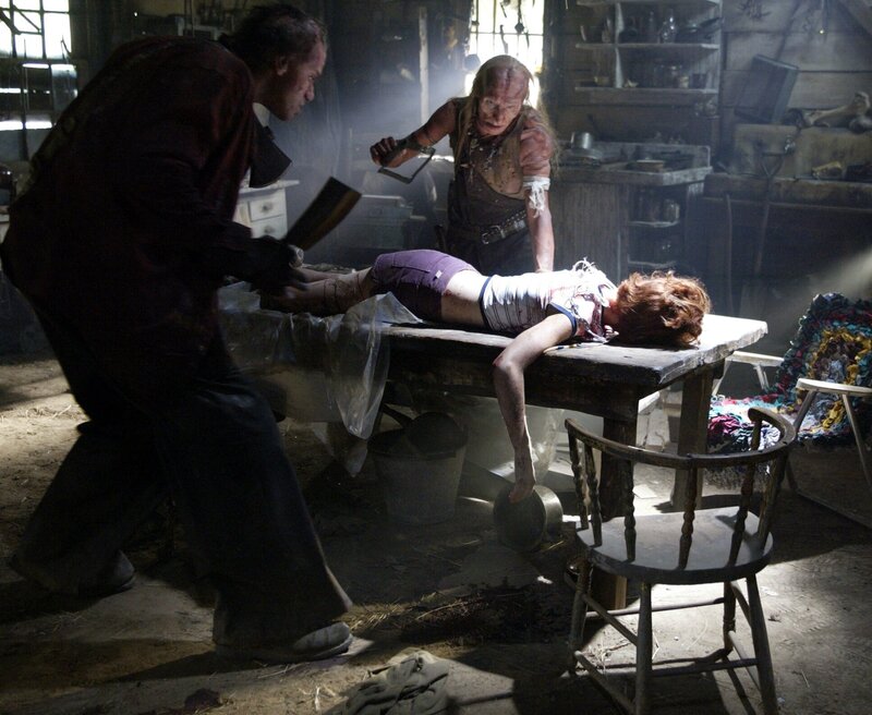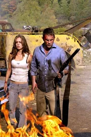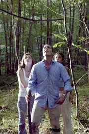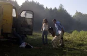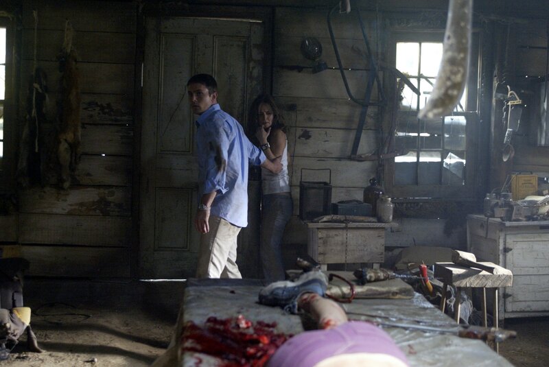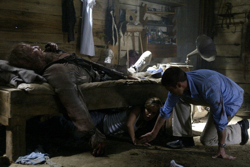 In der Waldhütte müssen Jesse (Eliza Dushku, l.) und Chris (Desmond Harrington, M.) eine grauenvolle Entdeckung machen: Die Bewohner haben ein Faible für Menschenfleisch! Eine sadistische Jagd beginnt ...Bild: © ProSieben Fun