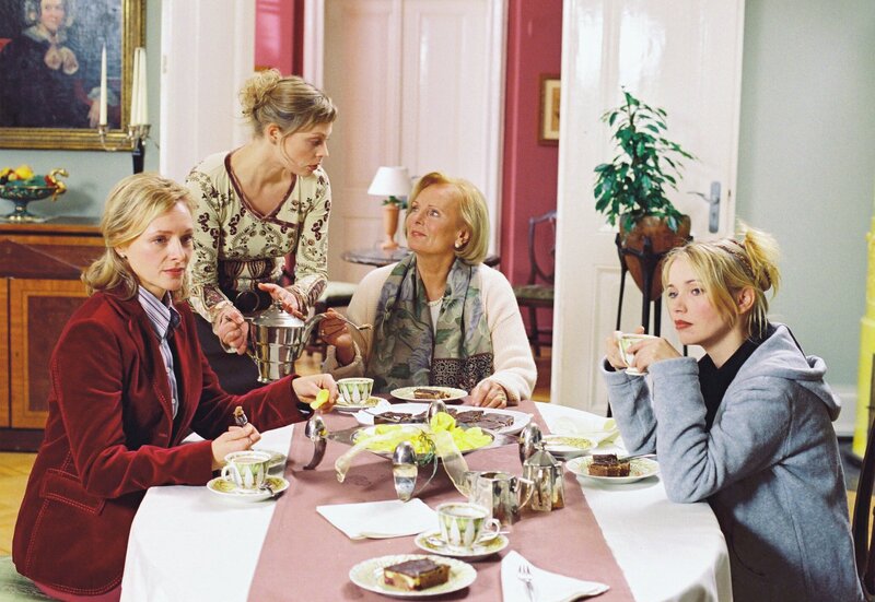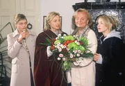 Susanne (Susanna Simon, 2.v.li.), Anja (Tina Ruland, re.) und Regina (Marita Marschall, li.) halten es für einen schlechten Scherz, als ihre Mutter Hildegard Reimund (Ruth Maria Kubitschek) an ihrem 60. Geburtstag mit der seltsamen Idee herausrückt, derjenigen ihre Villa zu vermachen, die ihr zuerst ein Enkelkind schenkt.Bild: © ARD/Degeto/Katrin Knoke