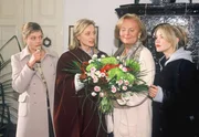Hildegard Reimund (Ruth Maria Kubitschek, 2. von rechts) umarmt ihre jüngste Tochter Susanne (Susanna Simon, rechts), die ihr ein Enkelkind schenkt. Anja (Tina Ruland, 2. von links.) und Regina (Marita Marschall) sind nicht begeistert.