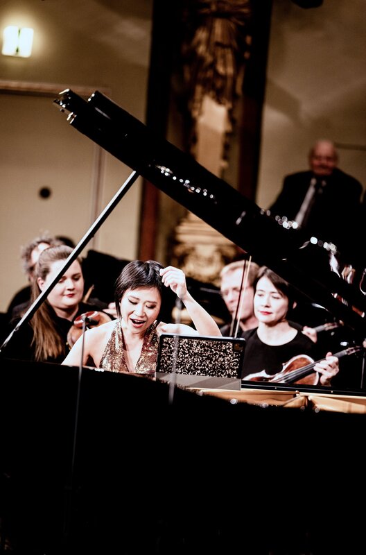 Für Yuja Wang wird ein Traum wahr: Vom Klavier aus leitet sie das Mahler Chamber Orchestra im Goldenen Saal des Wiener Musikvereins.Bild: © Julia Wesely