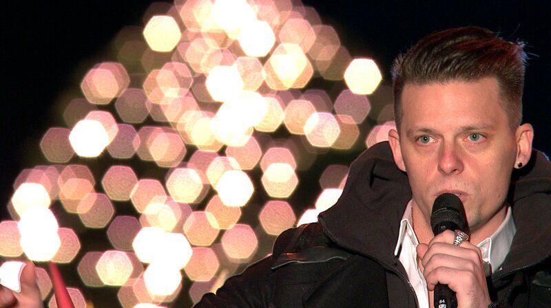 Die singende klingende Weihnachtspyramide - das sind drei Prominente, drei Weihnachtsmärkte in Berlin und Brandenburg und ein großes stimmungsvolles Miteinander in der schönsten Zeit des Jahres. - The Dark Tenor auf der BühneBild: © rbb