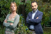 Die chaotische Romanautorin mit Schreibblockade Lissi (Esther Schweins) und der ordnungsliebende Bauleiter Kenan (Adnan Maral) leben Zaun an Zaun – und doch in verschiedenen Welten.Bild: © ARD Degeto/Erika Hauri