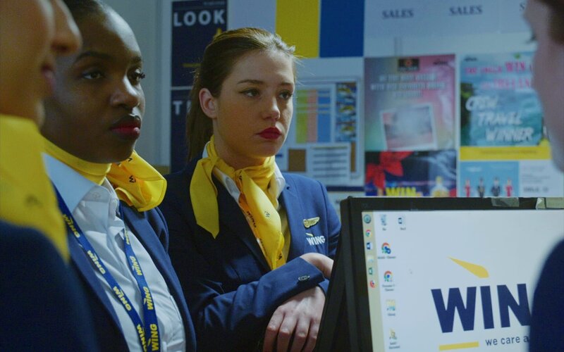 Die junge Stewardess Cassandre arbeitet bei einer Billig-Airline. Trotz Leistungsdruck und Routine scheint sie mit dem Job zufrieden. An ihren freien Tagen durchtanzt sie die Nächte, doch hinter dem Jetset-Leben hat sie einen schweren Verlust verdrängt, mit dem sie sich auseinandersetzen muss, als ihr überraschend gekündigt wird. Was vielen als Traumberuf erscheint, ist für die junge Belgierin Cassandre (Adèle Exarchopoulos) schon seit fast drei Jahren Routine. Sie arbeitet als Stewardess bei der Billig-Airline WING auf den Linien zwischen Lanzarote und dem europäischen Festland. Neben der Betreuung der Fluggäste ist der Umsatz von Duty-free-Produkten das oberste Ziel der Geschäftsleitung für die Flugbegleiterinnen. Jede bekommt ein Verkaufsziel, was in einer personalisierten App in Echtzeit angezeigt wird. So ist Cassandre in erster Linie Verkäuferin und muss den Passagieren im Ferienflieger überteuerte Kosmetikprodukte und Parfüm aufschwatzen. Trotz des Drucks und der immer gleichen Routine ist sie zufrieden mit dem Job und kann sich höchstens vorstellen, später bei der Luxusairline Emirates anzuheuern. In kurzen Pausen postet sie schöne Fotos vom Blick aus der Kabinentür auf Instagram, während sie eigentlich den Müll von den Plätzen einsammeln muss. Auf Lanzarote teilt sie sich ein kleines Apartment mit zwei Mitbewohnerinnen und wenn sie frei hat, durchtanzt sie die Nächte mit reichlich Alkohol und auch mal Ecstasy oder verabredet sich auf Tinder zu spontanem Sex. Mit ihrem Kollegen Arthur (Arthur Egloff) hat sie Momente der Nähe, will aber keine Beziehung mit ihm beginnen. Wie beiläufig erzählt sie ihm nach einer Partynacht, dass ihre Mutter einen tödlichen Verkehrsunfall hatte. Diesem Verlust hat sie sich nie wirklich gestellt und erst als die Telefongesellschaft ihr einen neuen Vertrag anbietet, weil der alte noch auf den Namen von Cassandres Mutter läuft, holt die Trauer sie ein. Und gerade jetzt muss sie im Weiterbildungskurs zum Cabin Manager ein Dauerlächeln zeigen und wird aufgefordert, alle persönlichen Gefühle beiseite zu lassen.