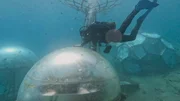 Das erste Unterwassergewächshaus der Welt: In "Nemo‘s Garden" im Mittelmeer werden Kräuter und Gemüse unter einer Plastikkuppel angebaut.Bild: © ZDF und Xavier Marquis