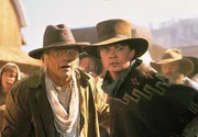 Nachdem er in "Zurück in die Zukunft II" mittels Zeitreise die Zukunft seiner Familie gesichert hat, ist Marty McFly (Michael J. Fox) wieder einmal im Jahr 1955 gelandet. Seinen Freund, den genialischen Erfinder Dr. Emmett Brown (Christopher Lloyd), hat es unterdessen ins Jahr 1885 verschlagen. Als Marty zufällig auf einen uralten Grabstein mit Browns Namen stößt und herausfindet, dass der Doc im Wilden Westen von einem Revolverhelden erschossen werden soll, reist er in die Vergangenheit, um den Mord an seinem besten Freund zu verhindern. Im Jahr 1885 angekommen, warnt er Brown vor dem drohenden Schicksal. Aber bevor die beiden vor dem Revolverheld Buford "Mad Dog" Tannen (Thomas F. Wilson) fliehen können, entdeckt Marty, dass ihre Zeitmaschine, der DeLorean Sportwagen, ein Leck im Tank hat - und ohne Treibstoff keine Flucht in die Zukunft! Als ihre Versuche, einen Ersatztreibstoff zu finden, grotesk scheitern, kommt Doc Brown auf eine waghalsige Idee: Ein rasender Zug soll den DeLorean anschieben und auf das für die Zeitreise nötige Tempo bringen. Beim Inspizieren der Bahnstrecke rettet Brown der sympathischen Lehrerin Clara (Mary Steenburgen) das Leben - und verliebt sich in sie. Mit seinem Eingreifen aber hat er den Lauf der Zukunft verändert. So kommt es, dass Marty am gleichen Abend zwar verhindern kann, dass Tannen den Doc erschießt - dafür wird er von dem Scharfschützen jedoch selbst zum Duell gefordert. Nur durch einen gewieften, von Clint Eastwood abgeschauten Trick kann Marty sich vor Tannens Kugel schützen. Bei der anschließenden Schlägerei wird der Ganove vorerst außer Gefecht gesetzt - aber die größte Herausforderung steht den Zeitreisenden noch bevor: Mit der gekaperten Dampflok den DeLorean auf Tempo zu bringen und endlich ins Jahr 1985 zurückzukehren. Zunächst scheint auch alles wie geplant zu funktionieren ...
