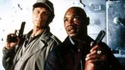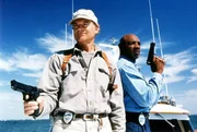 rbb Fernsehen ZWEI FÄUSTE FÜR MIAMI, "Virtual Weapon", USA 1996, Regie Anthony M. Dawson, am Samstag (31.03.12) um 14:50 Uhr. Der Spezialagent Skims (Terence Hill, li.) und sein Partner Davis (Marvin Hagler) sind auf der Flucht vor einer Waffenhändlerbande. Eine schießfreudige ältere Dame (Flo McGee) unterstützt sie dabei.Bild: © WDR; WDR/DEGETO