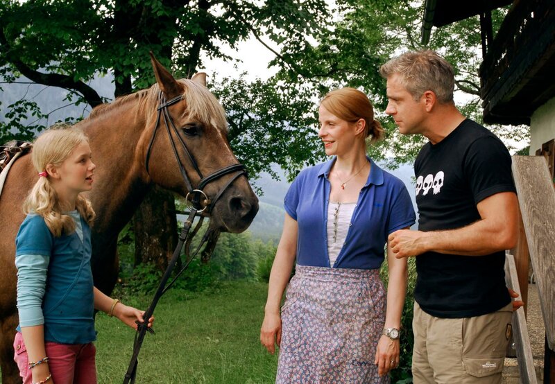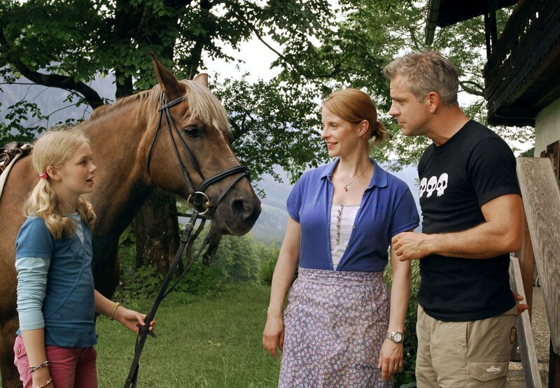 ARD ZWEI HERZEN UND EIN EDELWEISS, Deutschland 2008, Regie Helmut Metzger, am Freitag (15.07.11) um 20:15 Uhr im Ersten. Der Makler Alexander (Florian Fitz) versucht, sich bei Bettina (Julia Jäger) und ihrer Tochter Lisa (Karla Leipold) einzuschmeicheln.