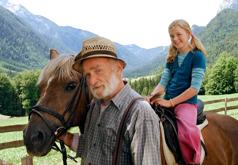 hr-fernsehen ZWEI HERZEN UND EIN EDELWEISS, Spielfilm, Deutschland 2008, Regie: Helmut Metzger, am Samstag (21.04.12) um 12:50 Uhr. Der alte Gutsverwalter Karl (Peter Mitterrutzner) bringt der jungen Städterin Lisa (Karla Leipold) das Reiten bei.