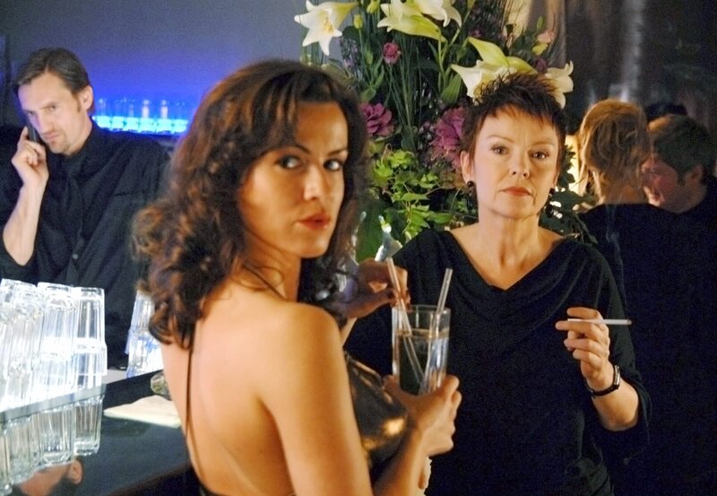 WDR Fernsehen TATORT - "Tod einer Heuschrecke", Fernsehfilm Deutschland 2008, Regie: Ralph Bohn, am Donnerstag (19.05.11) um 20:15 Uhr. Simone (Katrin Sass) nach ihrer Aussage im Kommissariat (mit D. Raacke).