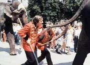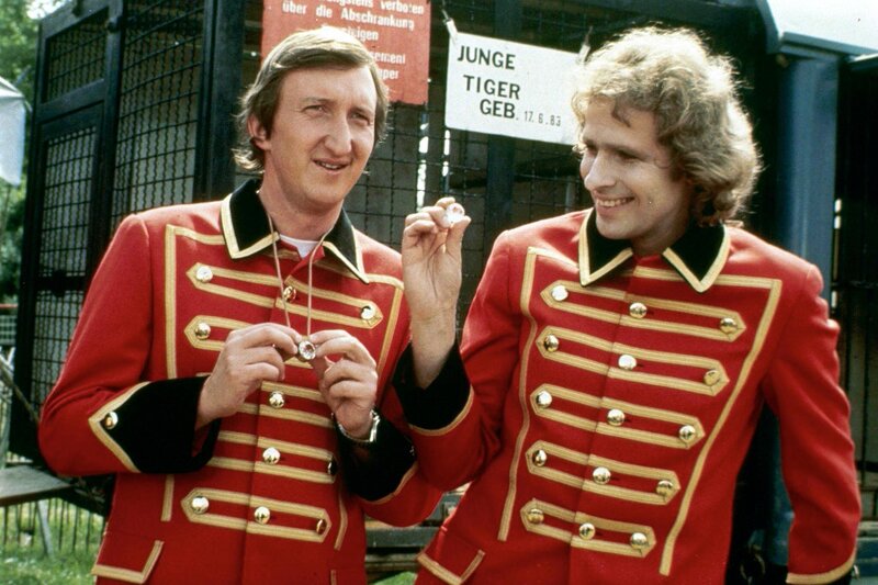 Durch einen glücklichen Zufall kommen Mike (Mike Krüger, l.) und Tommy (Thomas Gottschalk, r.) in den Besitz geklauter Edelsteine, doch dann verschluckt ein Elefant die wertvollen Steinchen ...Bild: © ORF