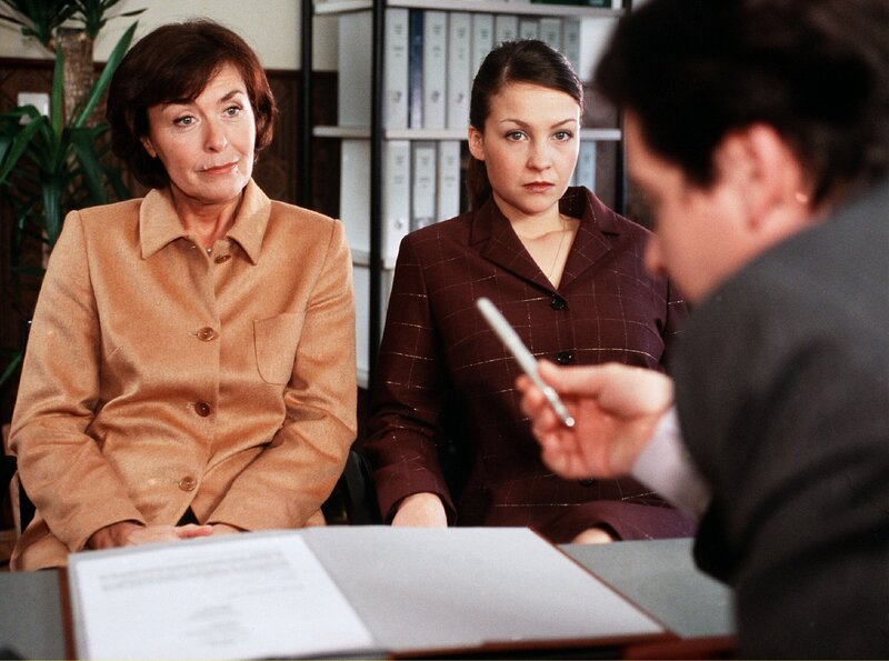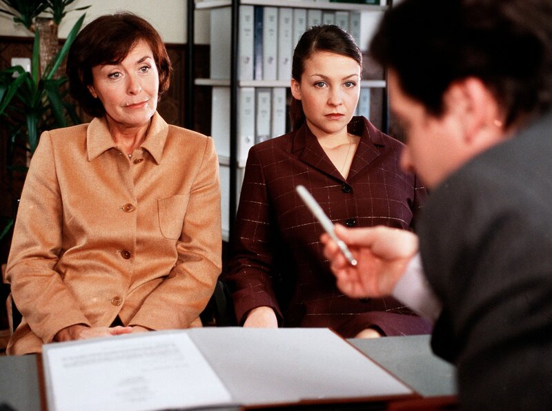 Lügen und Geheimnisse: Carola (Thekla Carola Wied, li.) und ihre Tochter Simone (Valerie Koch) ahnen nicht, dass der Prokurist Viktor Lipinski (Fritz Karl, re.) in Dieters Möbelfirma eigene Interessen verfolgt.